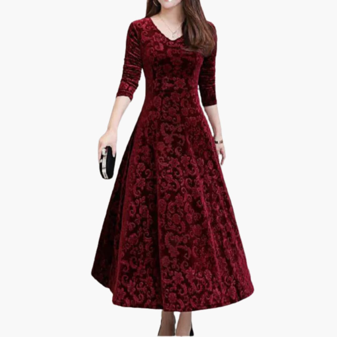 LB | Damska sukienka maxi o linii A z kwiatową strukturą i rękawami